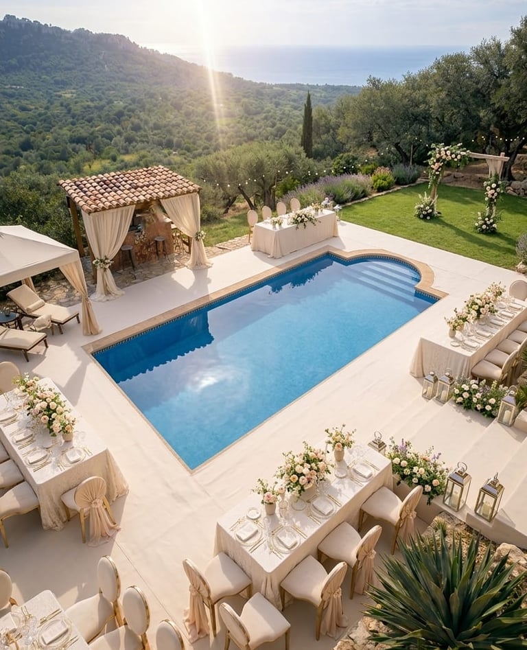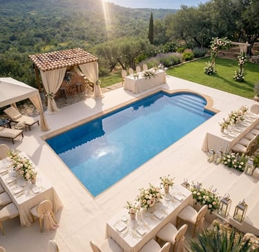 Ob romantische Trauung unter freiem Himmel, stilvoller Empfang auf der Terrasse oder eine elegante Feier am Pool – die Villa schafft eine exklusive und private Atmosphäre für Ihre Hochzeit. Die Kombination aus Luxus, Ruhe und natürlicher Schönheit macht jede Feier zu einem ganz besonderen Erlebnis.