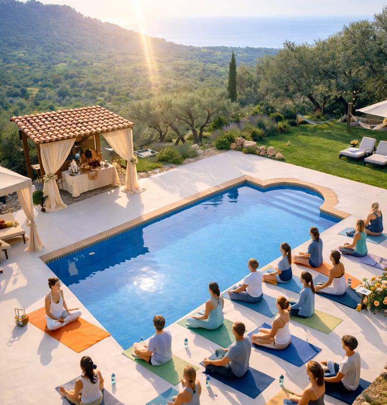 Ob Yoga-Retreat, Coaching-Woche oder Gesundheitsreise – die Villa bietet ausreichend Platz für Gruppen und vielfältige Möglichkeiten für gemeinsame Aktivitäten sowie Rückzugsmomente. Der Außenbereich mit Pool und Garten unterstützt das ganzheitliche Wohlbefinden und sorgt für eine entspannte Atmosphäre.
